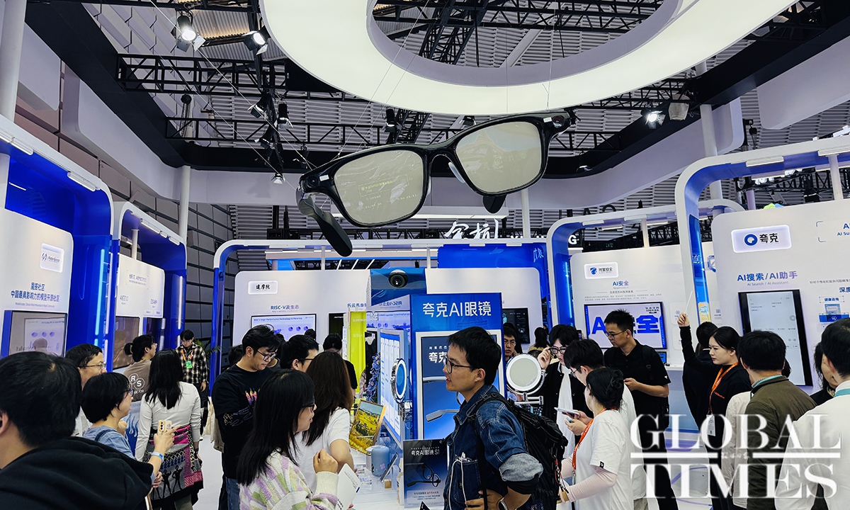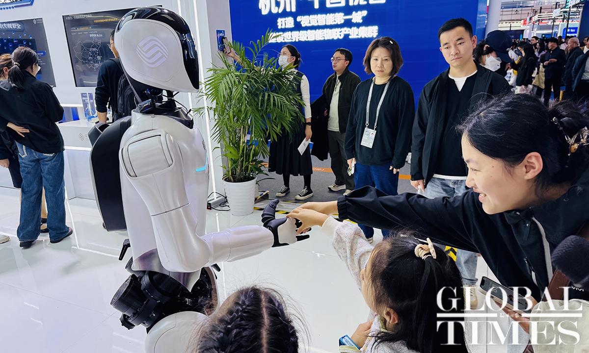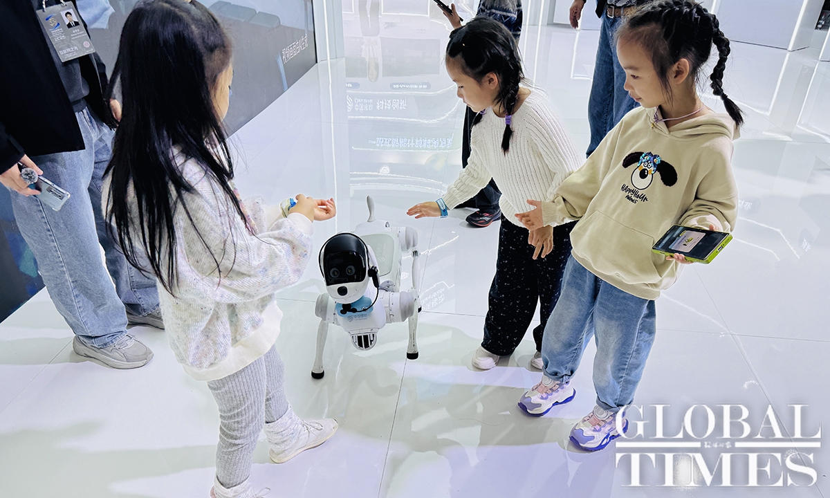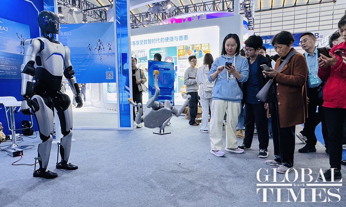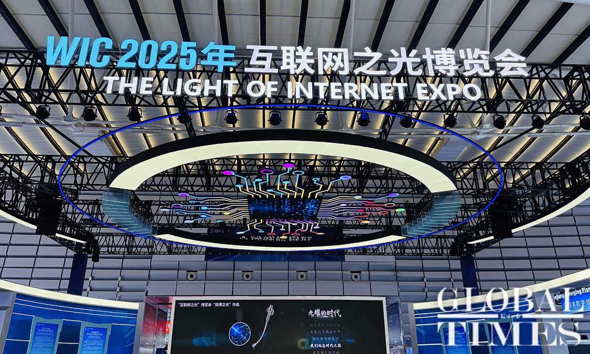 The Light of Internet Expo is one of the signature events of the 2025 World Internet Conference (WIC) Wuzhen Summit, which kicked off on November 7, 2025, in Wuzhen, an ancient water town in East China’s Zhejiang Province. Crowds were attracted by robots, robotic dogs, and embodied artificial intelligence (AI). This year, more than 670 enterprises and institutions from 54 countries and regions are exhibiting at the expo, showcasing AI-powered innovations across industries, according to official data. Photos: Chi Jingyi/GT