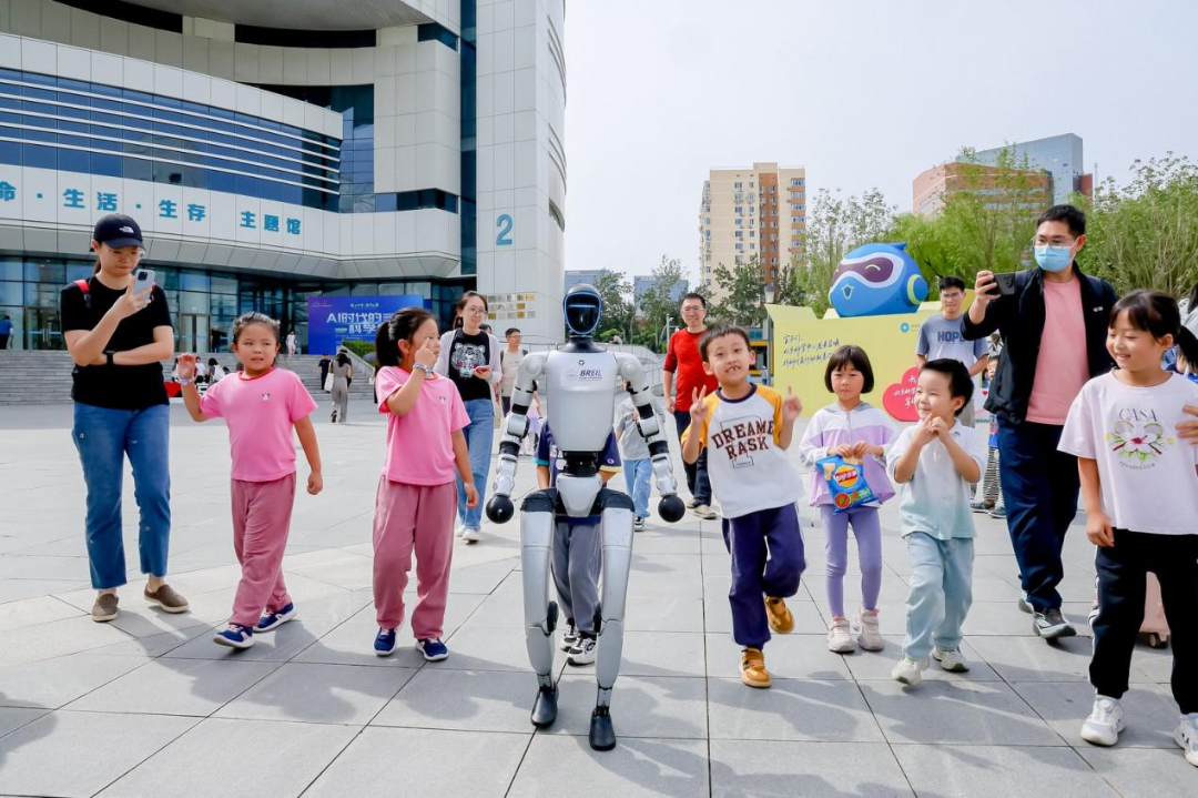Participants interact with a robot during the 2025 "Scientific Circle" youth science education outdoor exhibition in Beijing. Photo: Beijing Science Center
