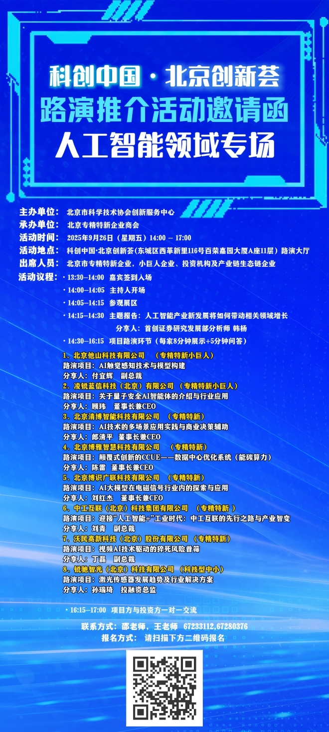 活动预告|科创中国·北京创新荟路演推介活动人工智能领域专场