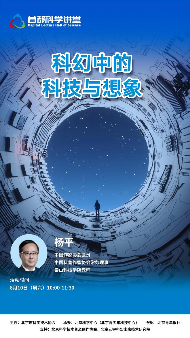 在第十三届北京科幻创作创意大赛“光年奖”活动期间,本期首都科学讲堂特别邀请中国作家协会会员、中国科普作家协会常务理事、泰山科技学院教师杨平,带领公众进入科幻世界,了解科技创新与科幻创作的“双向奔赴”。