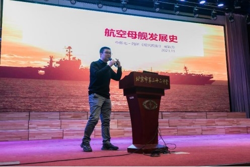 《现代舰船》杂志主编、中国科普作家协会国防科普委员会会员崔轶亮走进北京市第二十二中学,以《航空母舰发展史》为题开展讲座