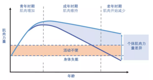 人体的肌肉起源于胚胎生殖细胞中的中胚层,是一种收缩组织,可以分为心肌、平滑肌和骨骼肌三大类。通过一项长达12年的追踪研究,科学家们发现,人体肌肉的重量会以每10年6%的速度减少。可见,肌肉质量下降的速率与肌少症人群的患病率是呈正相关的。