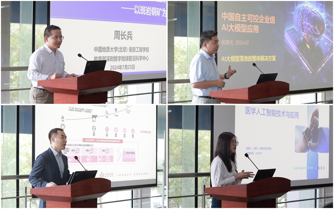 主题分享环节,中国地质大学(北京)信息工程学院副院长周长兵教授带来了关键金属矿产知识图谱与大模型研发的精彩内容,对大模型促进知识图谱的构建进行了详细介绍;东华软件副总工杨晓光分享了中国自主可控企业级AI大模型应用及落地的整体解决方案,对大模型应用落地存在问题、如何充分发挥大模型的价值以及大模型方案进行了深入探讨和讲解;凯联资本董事总经理姚宁波从投资角度探讨了具身智能机器人的发展态势,认为其市场潜力巨大,科技跨越学术研究和资本市场是全链条的;东华医为AI事业部总经理刘玲从医学AI发展背景、医学影像AI技术及应用、医学AI大模型技术及应用等方面进行了医学人工智能技术与应用的主题分享。