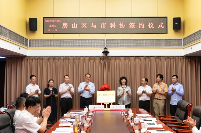 为服务区域经济社会发展,支援房山区灾后重建,8月23日上午,北京市科协与房山区人民政府签署战略合作协议并召开座谈会。北京市科协党组书记、常务副主席沈洁,房山区委书记邹劲松出席签约仪式并为房山区院士专家服务中心、乡村振兴工作站揭牌。房山区委副书记、区长阳波主持签约仪式。北京市科协一级巡视员何劲松,房山区副区长高武军代表双方签署战略合作协议。