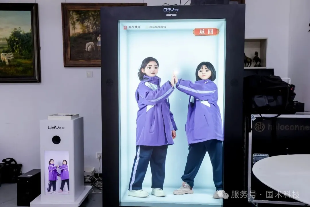 通过科普老师的讲解,同学们了解到,“中华民族服饰AI换装”和“AI卡通换脸”都是基于“OBVerse奥比全息舱+复刻数字人”开发的衍生应用产品。“OBVerse奥比全息舱+复刻数字人”是一个快速高效的4K超高清裸眼3D内容创作生成平台,借助这一创新载体,大家或以歌声或以祝福,复刻下对民建的美好祝愿,以此献礼民建成立80周年。