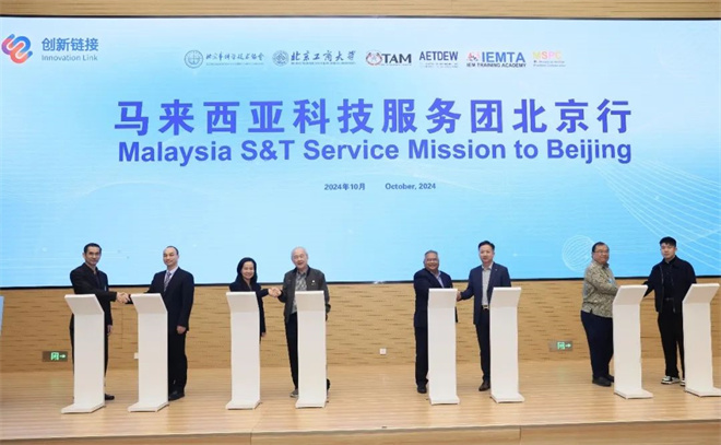 10月17日,首都海智“创新链接”马来西亚科技服务团北京行活动在京举办。活动由北京市科学技术协会、北京工商大学指导,北京科技国际交流中心、北京工商大学“一带一路”联合培训中心、榆垡镇人民政府主办。来自马来西亚科技协会、发展中世界工程院、马来西亚工程师学会、马来西亚服务业联盟等机构代表,以及北京创新型企业、科技社团、青年科技人才代表等70余人参加活动。