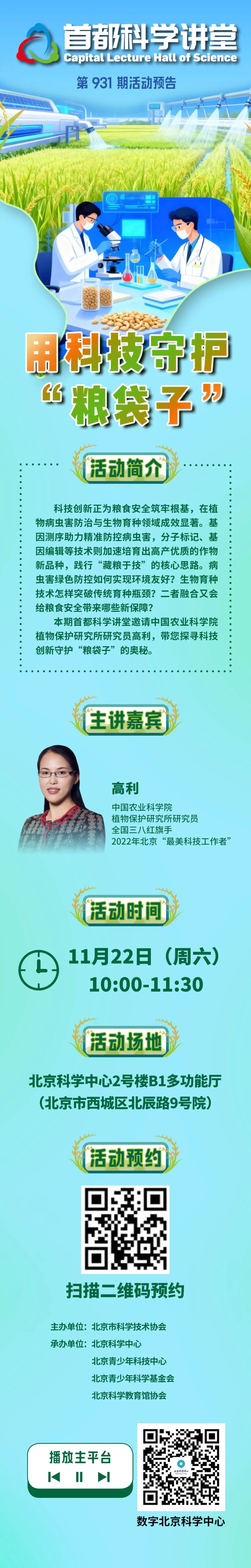 首都科学讲堂 第931期活动预告