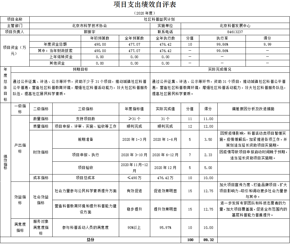 “科学技术普及”(款)2020年度决算3485.12万元,比2020年年初预算减少499.09万元,下降12.53%。主要原因:落实过紧日子思想,压缩一般公共预算财政拨款支出。