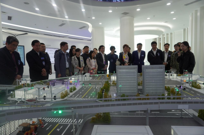 在北京市高级别自动驾驶示范区创新运营中心,京港澳青年科学家结合视频、沙盘、模型等,聆听工作人员的介绍。自2020年9月以来,北京市以北京亦庄为核心区域,启动建设示范区,依托车、路、云、网、图五大体系,构建了一个城市级的工程试验平台。截至目前,北京亦庄已落地Robotaxi、自动驾驶小巴等八大示范场景,随着示范区持续推进“五站两场”场景开放,北京亦庄到大兴机场自动驾驶接驳服务已开启商业化试点,从北京亦庄往返北京南站的自动驾驶车辆也在路测中。