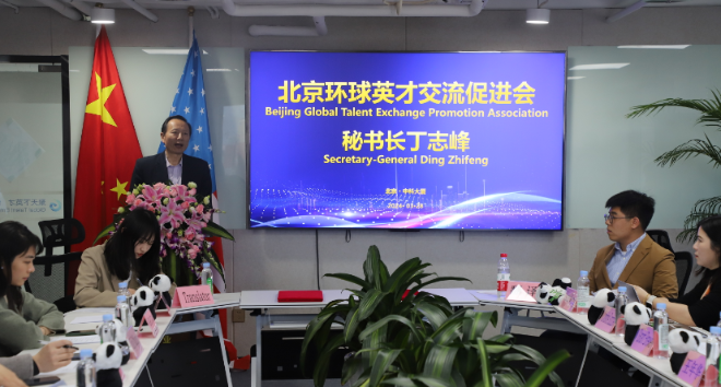 北京环球英才交流促进会执行会长兼秘书长丁志峰在致辞中介绍了促进会近十年的工作和发展情况,表达了未来与伊大等海外高校和人才科技组织加强合作的愿景。