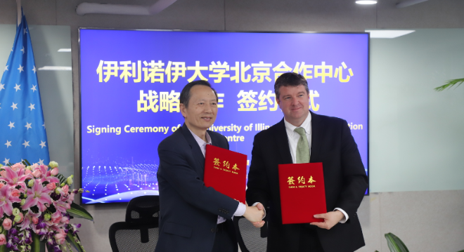 最后,伊大GET与北京环球英才交流促进会举行了共建“伊利诺伊大学北京合作中心”战略合作协议签约仪式。未来,该中心将侧重中美在教育、科技、人才等方面的交流与合作,为双方共同打造国际科技创新合作平台。