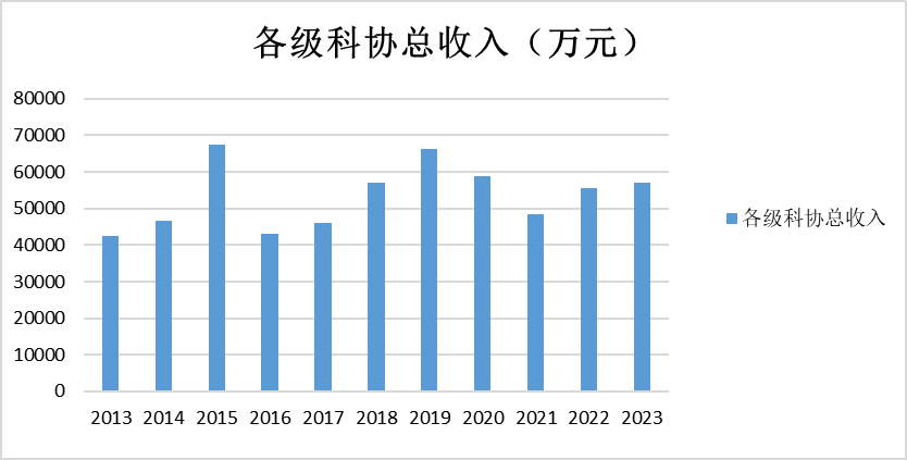 [2]各级科协本年收入:指本年度各级科协部门经费总收入,包括科协经费总收入和直属单位经费总收入。考虑到统计调查数据的时效性,公报中的财务类数据,均按调查单位确定的时点数据或预计数上报。