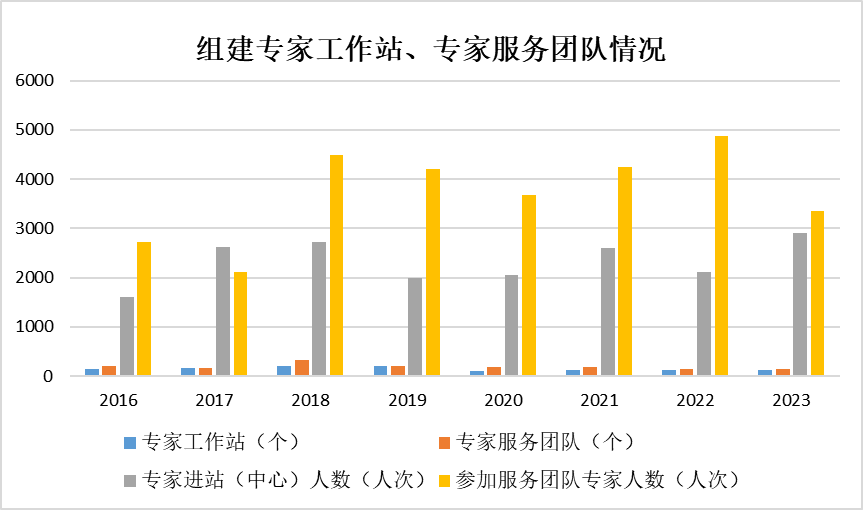 各级科协和省级学会指导组建专家工作站[23]129个,全年组织进站专家2,912人次。组建专家服务团队[24]143个,参加服务团队专家3,361人次。