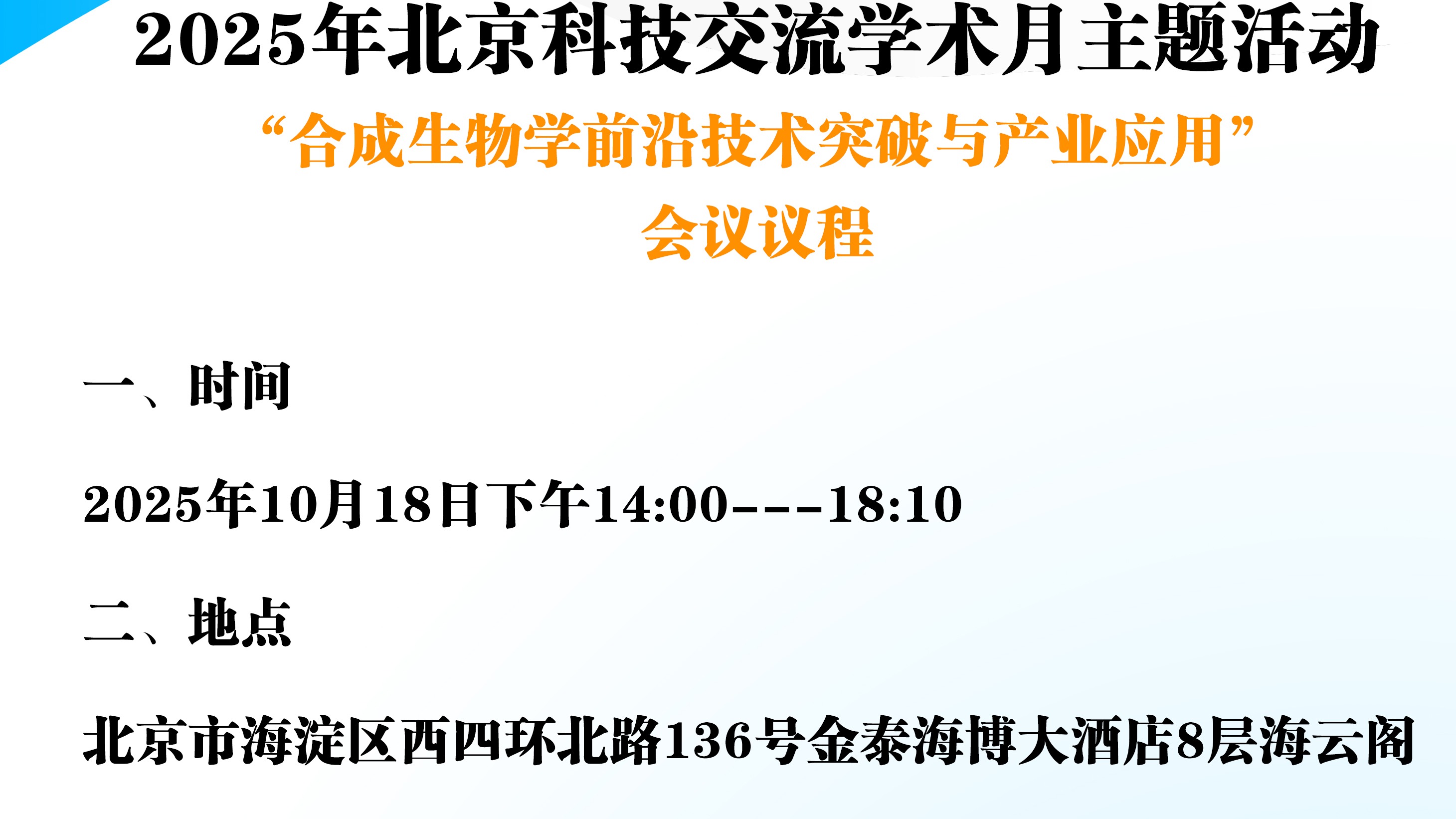 2025年北京科技交流学术月“合成生物学前沿技术突破与产业应用”主题活动